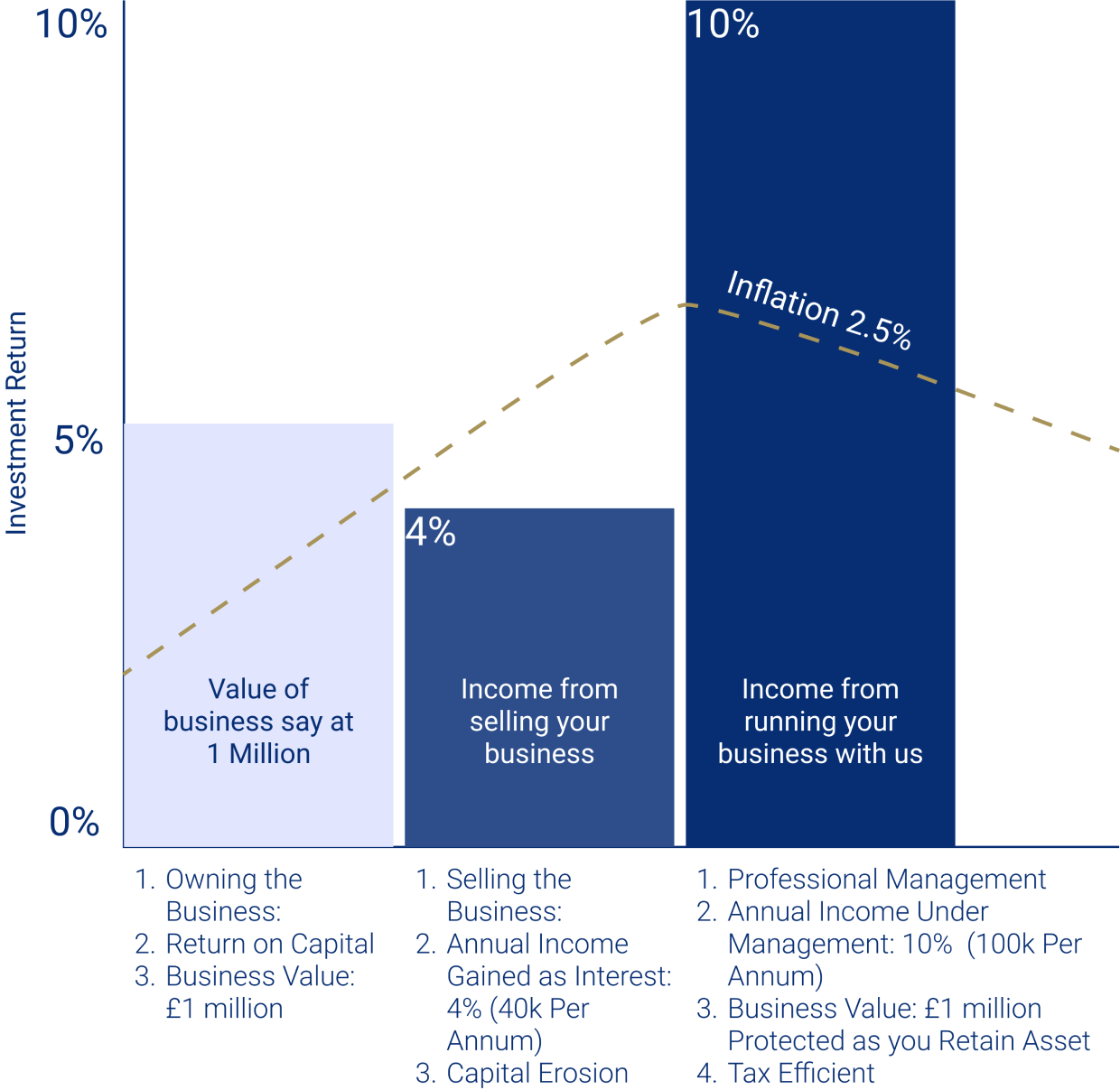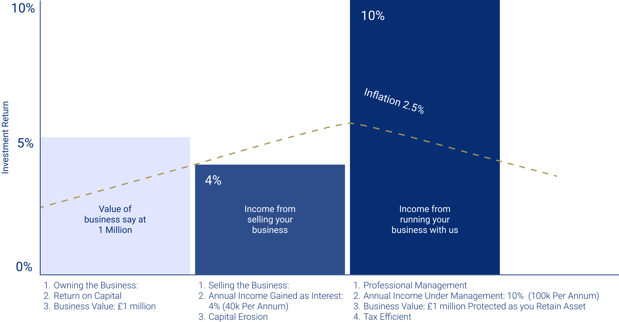 • Ensured the owner now receives a protected income of 14% of the business’s net asset value